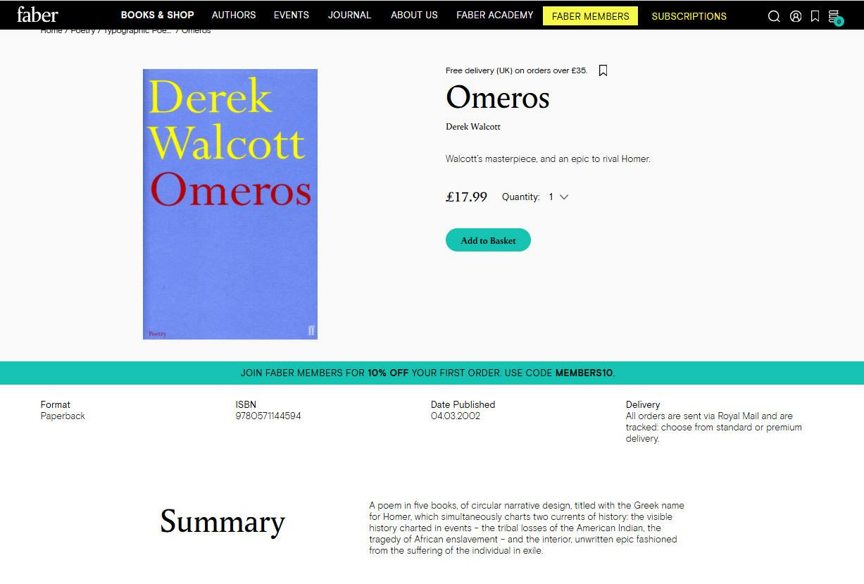 A brief pendant to the previous post, on Walcott’s poem. I had drafted that piece, and was posting it to Substack, when I checked out the official Faber page, thinking to pull a cover-image to stand at the head of the post. But I was taken aback by the summary Faber provides: